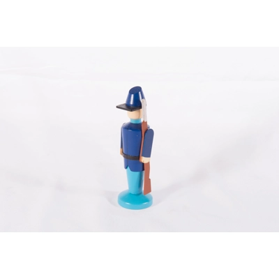 Ever the gentleman, in the early years of the war, their experience and courage enabled them to succeed against superior odds. They wear the grey Kepi-style hat, grey frock coat, and blue trousers. He has gold trim on his collar and sleeve, and a red sash under his belt to show his officer status.